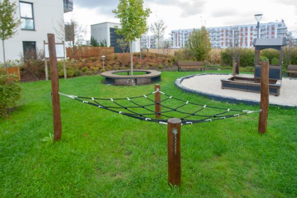 Kamodo er laget av robust robinietre og forsterket PP-tau, noe som sikrer en slitesterk og pålitelig konstruksjon. De nøye utvalgte materialene gir både høy motstand mot vær og vind og et naturlig uttrykk som passer perfekt i grønne omgivelser.