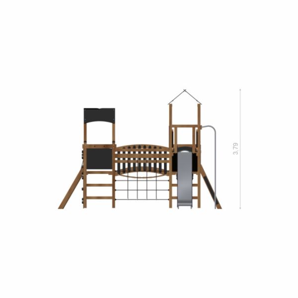 Node er utviklet for barn fra tre år og oppover, og byr på flere spennende utfordringer i varierende høyder. Plattformene og skliene er utformet for å stimulere både lek og trygg utfoldelse. Hele konstruksjonen møter de strenge sikkerhetskravene i EN 1176-1:2017, noe som sikrer høyeste standard for barnas beskyttelse. Kvalitetsmaterialer og gjennomtenkt design gjør apparatet svært robust og motstandsdyktig mot slitasje.