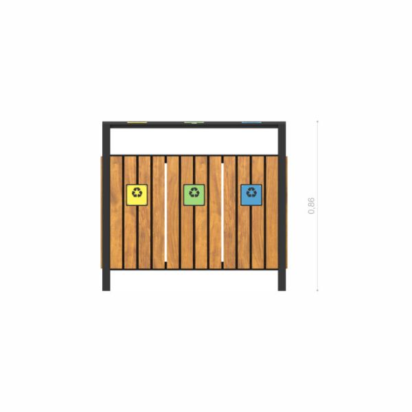 Denne avfallsbeholderen egner seg perfekt for parker, lekeplasser, skoleområder og andre offentlige steder hvor det er behov for effektiv kildesortering. Den tydelige inndelingen for ulike typer avfall gjør det lett for brukere å bidra til miljøvennlig avfallshåndtering, og det moderne utseendet løfter helhetsinntrykket av uterommet.