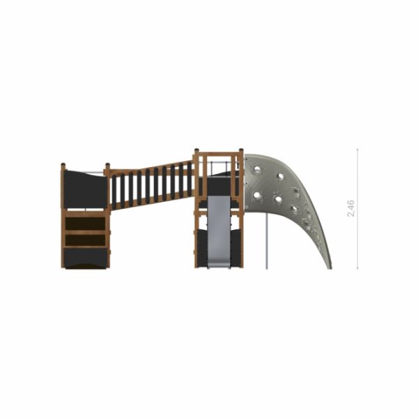 Utfordreren- Aztec Nature er en spennende og allsidig lekeplassinstallasjon designet for å inspirere barn til aktiv lek og motorisk utvikling. Dette er et lekeapparat som kombinerer klatreutfordringer og kreativ utfoldelse, og gir barn i ulike aldre en trygg og engasjerende opplevelse utendørs.