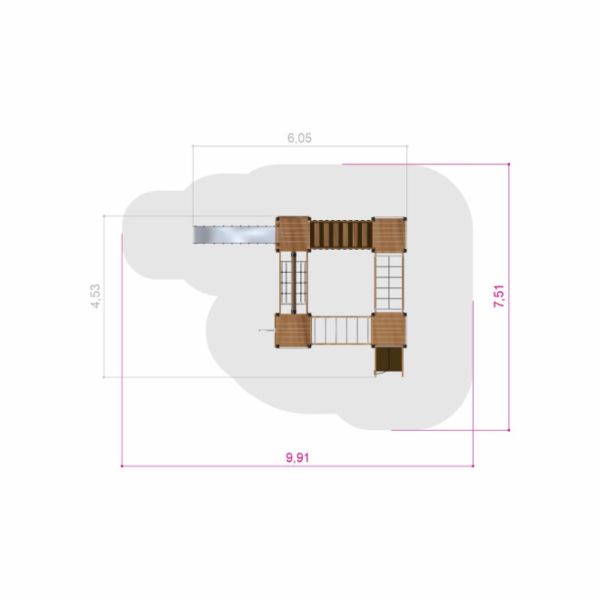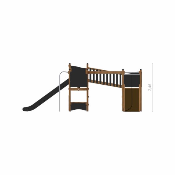 Dette klatrestativet passer perfekt i offentlige parker, skolegårder og borettslag, og bidrar til å skape et sosialt samlingspunkt for barn i alle aldre. Med flere klatreelementer og skliløsninger stimulerer det motorisk utvikling, samarbeid og lek i trygge omgivelser. Naturlige materialer gjør at klatrejungelen glir harmonisk inn i alle typer uterom.